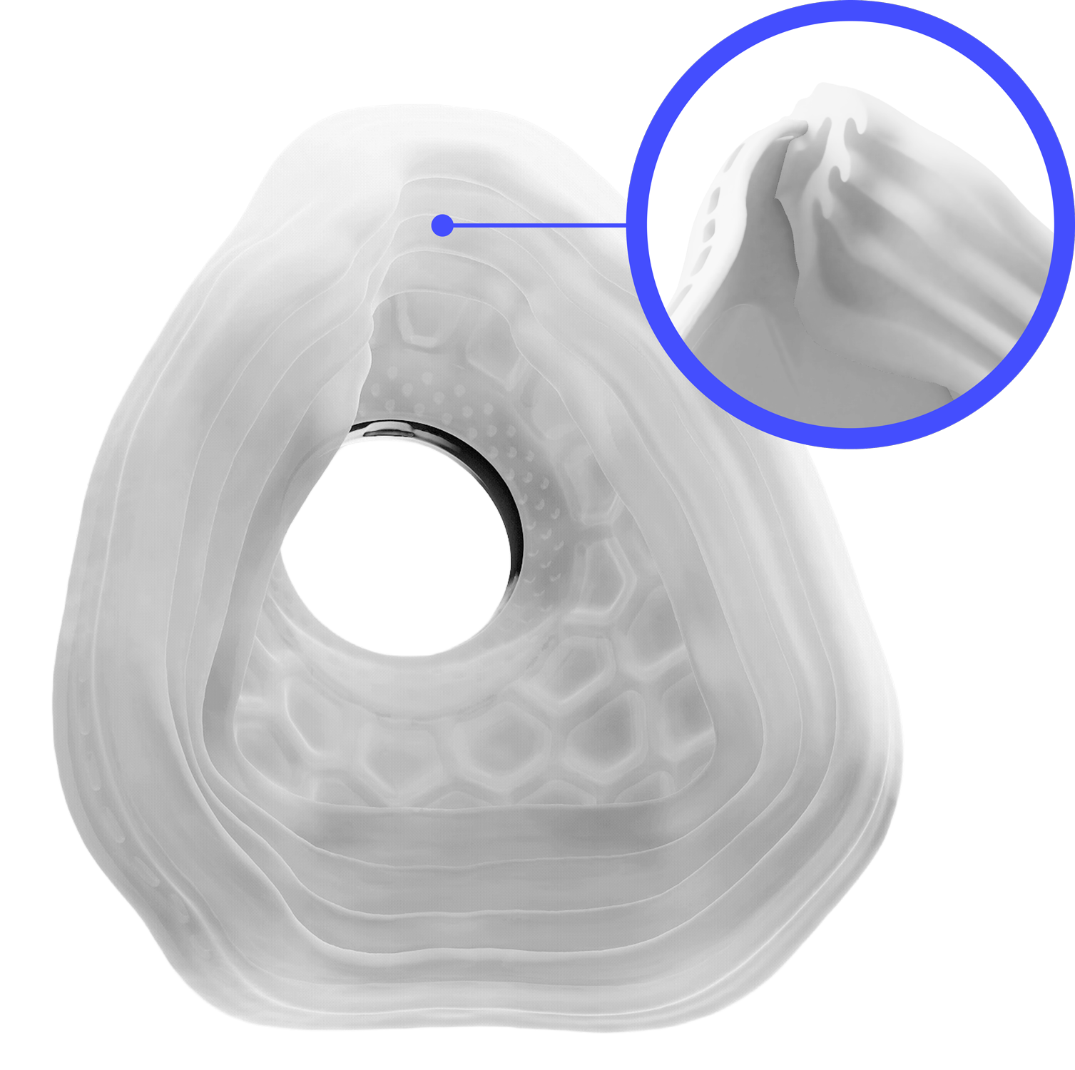 The multi-layered silicone groove seal is precision-contoured to your face, creating a secure bond through fit—not force—for consistent therapy without disruption.